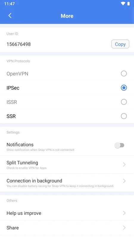 Snap VPN is a free VPN proxy that enables users to browse the internet securely and anonymously while offering unlimited bandwidth and servers. It helps to avoid geographical limitations and gives you access to the blocked websites, streaming platforms, and a lot of online games as well.